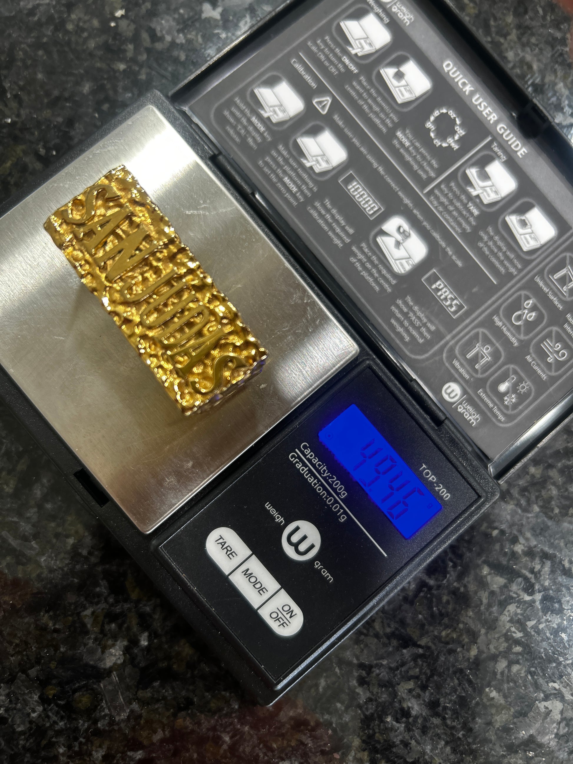 * The ring weighs 50 grams, making it nice and heavy.